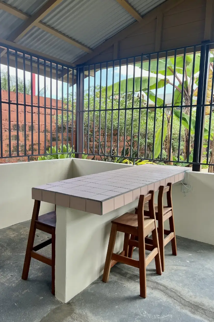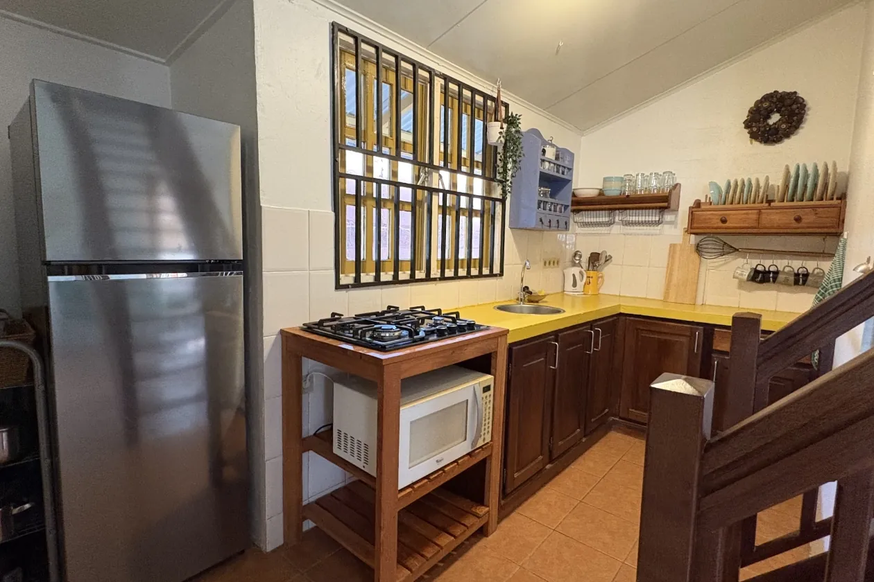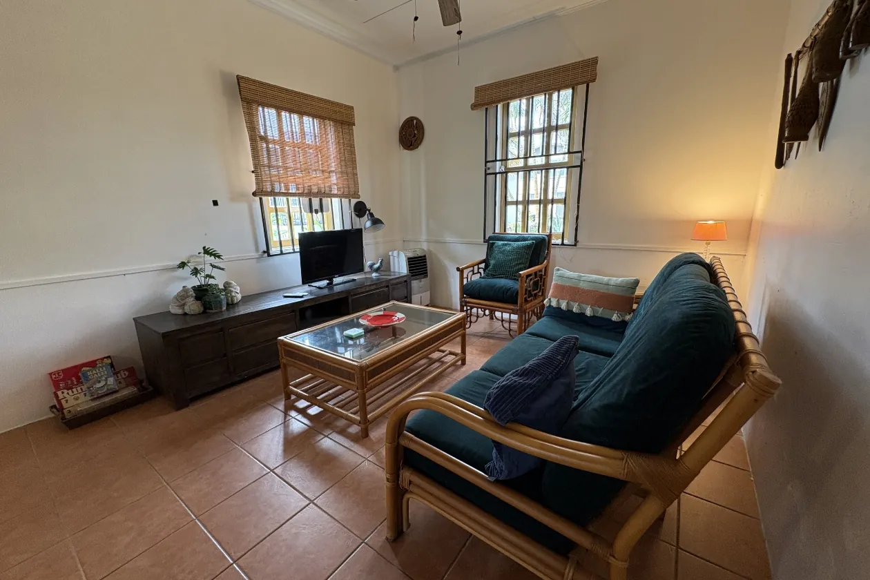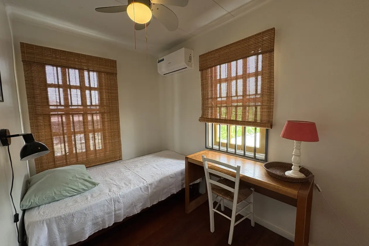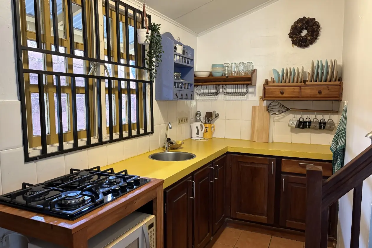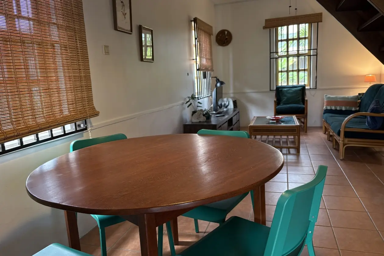 The “Oud Erfhuisje” measures approximately 70m² and has been fully restored. Thanks to its traditional construction style, it retains the authentic look and feel of old Paramaribo. The house is fully furnished and equipped with all modern comforts. The atmosphere of old Paramaribo has also been carried through in the interior, with vintage elements that revive times gone by. The home evokes the coziness of the past, without compromising on luxury. The large windows can all be opened, allowing you to enjoy the feeling of being outside while indoors.