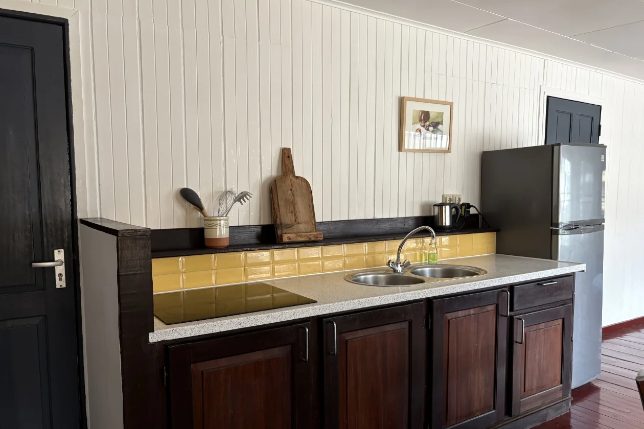 The decor evokes the past and offers a unique opportunity to experience the Suriname of yesteryear. The well-equipped kitchen provides everything you need to prepare a delicious meal, the beds are comfortable, and the apartment is furnished for carefree enjoyment of the surroundings.